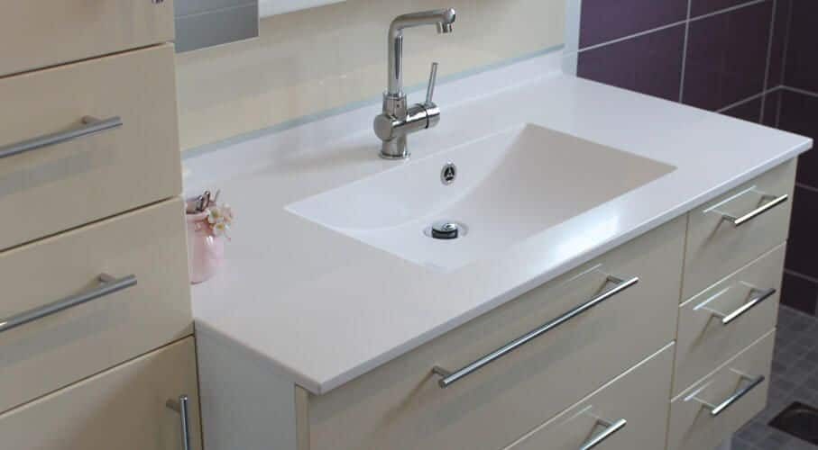 Plan de toilette Solid Surface blanc satiné avec une vasque Madrid.