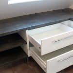 Meuble d’angle comprenant de nombreux tiroirs installé sous combles