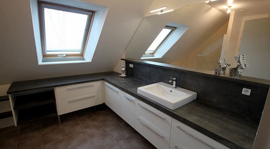 - Dessus meuble sous rampant, stratifié béton foncé ST9 – F275, larg 194,5 x prof 63 x ép 4 cm