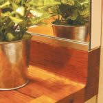 Dessus colonne basse et corniche teck lamellé vernis.