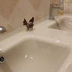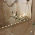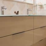 Plan de toilette en verre extra clair laqué (RAL 1015) écru avec 2 vasques avec trop plein.