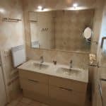- 2 meubles sous-vasques : larg 70 x prof 52 x haut 52 cm.