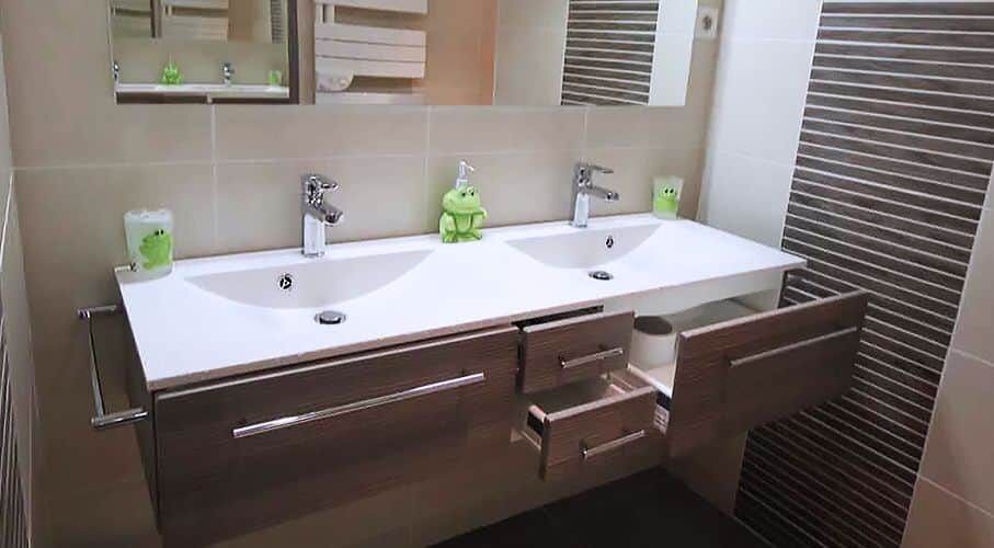 - Plan résine 2 vasques Madrid moulées : larg 140 x prof 48 x ép 1,5 cm.