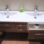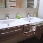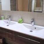 - Plan résine 2 vasques Madrid moulées : larg 140 x prof 48 x ép 1,5 cm.