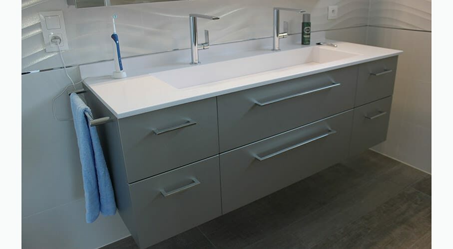 Nous ne trouvions pas de meubles de salle de bains aux dimensions souhaitées dans les magasins classiques.