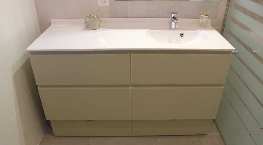 Plan de toilette résine « solid surface » blanc pailleté argent brillant