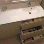 - Meuble sous vasque 2 tiroirs – Prof tiroir du haut 40 cm – Prof tiroir du bas 45 cm, Larg 70 x haut 61,5 x prof 54 cm