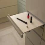 - Colonne 1 porte, charnières à droite, 3 étagères – 3 tiroirs prof 50 cm – 1 tablette coulissante – Larg 40 x haut 185 x prof 54 cm