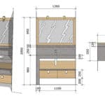 - Structure béton, plan + jambage, avec vide sanitaire de 6 cm : larg 121 x prof 55 x hauteur du plan 90 cm.