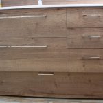 - Crédence – Mélaminé Chêne Halifax Tabac – Largeur 124,5 x hauteur 20 x ép 2 cm Posé sur profil argent.
