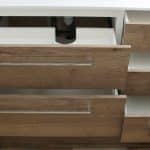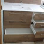 - Meuble sous-vasque 2 tiroirs – Largeur 80 x hauteur 56 x profondeur 54 cm Profondeur tiroir du haut 40 cm – Profondeur tiroir du bas 45 cm soit 7 cm de vide sanitaire