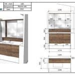 - Miroir triptyque – tablette résine Blanc – Largeur 124 x hauteur 86 x prof 18 cm Armoires latérales largeur 30 cm – 2 Prise de courant à l’intérieur des armoires. Miroir sur portes.