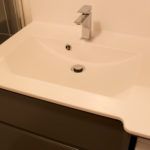 - Plan toilette résine solid surface blanc satiné, Larg 128 x prof 56/60 x ép 1,5 cm.