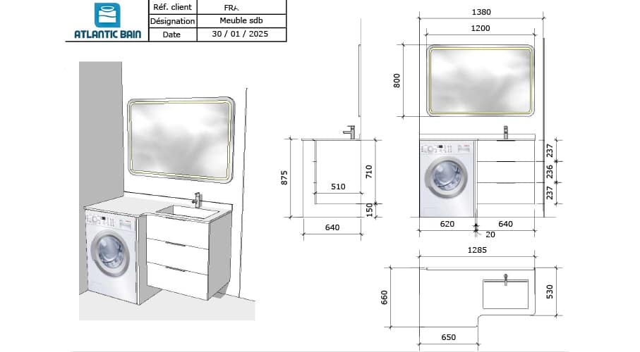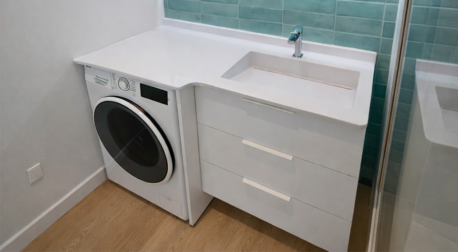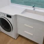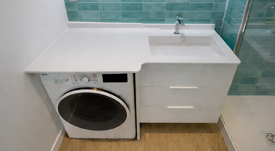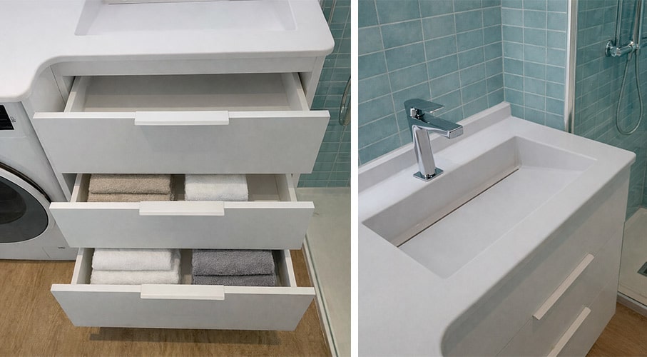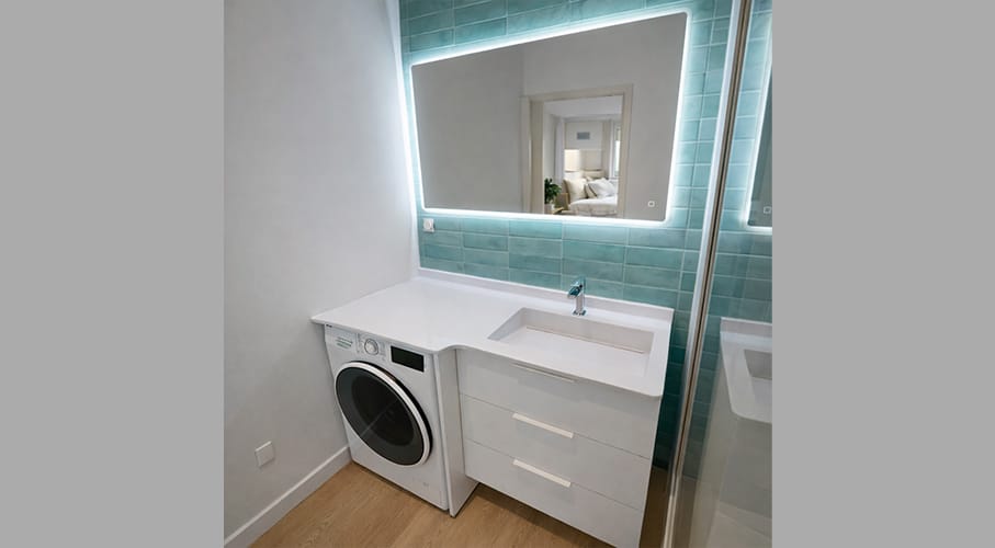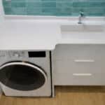 Meuble de salle de bains sur mesure avec lave-linge intégré (version lave-linge apparent).