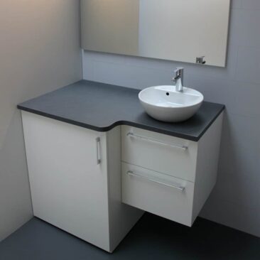 Plan toilette Stratifié – Finition imitation bois Chant Droit.