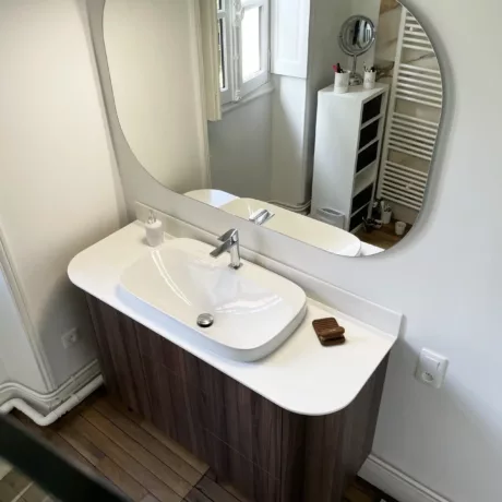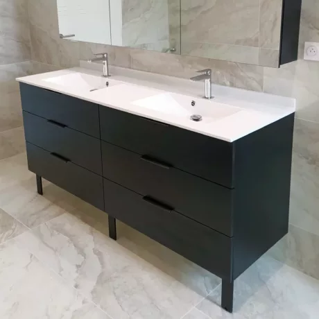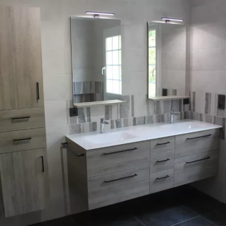 Toutes nos réalisations de meubles de salle de bain sur mesure avec photos et plan d'aménagement. Fabricant français depuis 50 ans. Meubles livrés montés.