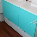Façades Boston avec prise de main intégrée couleur personnalisée turquoise satiné.