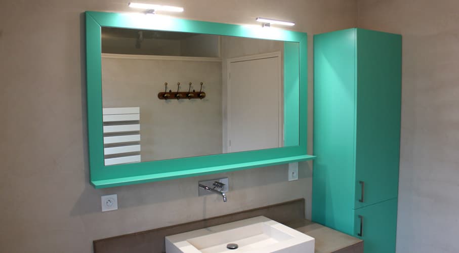 Miroir avec cadre et tablette laqué satiné vert turquoise RAL 6016