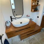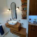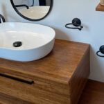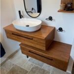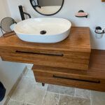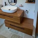 - Meuble sous-vasque 1 tiroir – Largeur 100 x hauteur 27 x profondeur 46 cm – Profondeur tiroir 35 cm – Chant du plan alaisé.