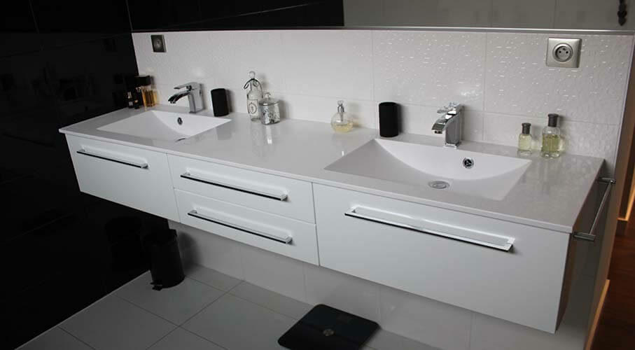 Plan Moulé Solid Surface blanc brillant avec deux vasques Madrid