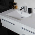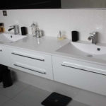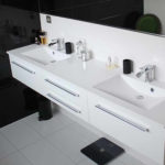 Plan Moulé Solid Surface blanc brillant avec deux vasques Madrid