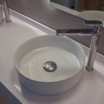 La résine solide surface est très adaptée à ce type de projet. Très facile d'entretien.