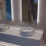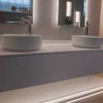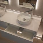 Façades et plan de toilette : Résine solid surface blanc satiné
