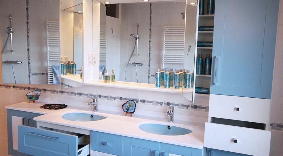 Façades meuble Florence polymère laqué bleu personnalisé.