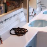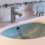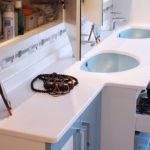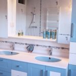 Plan toilette résine blanc alpin satiné avec 2 vasques ovale bicolore