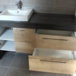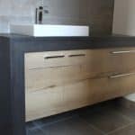 Meuble suspendu avec un plan épais couvrant le côté du meuble