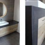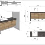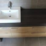 - Plan de toilette avec jambage à gauche, larg 150 x prof 50 x Haut 85 cm – Épaisseur plan et jambage 10 cm