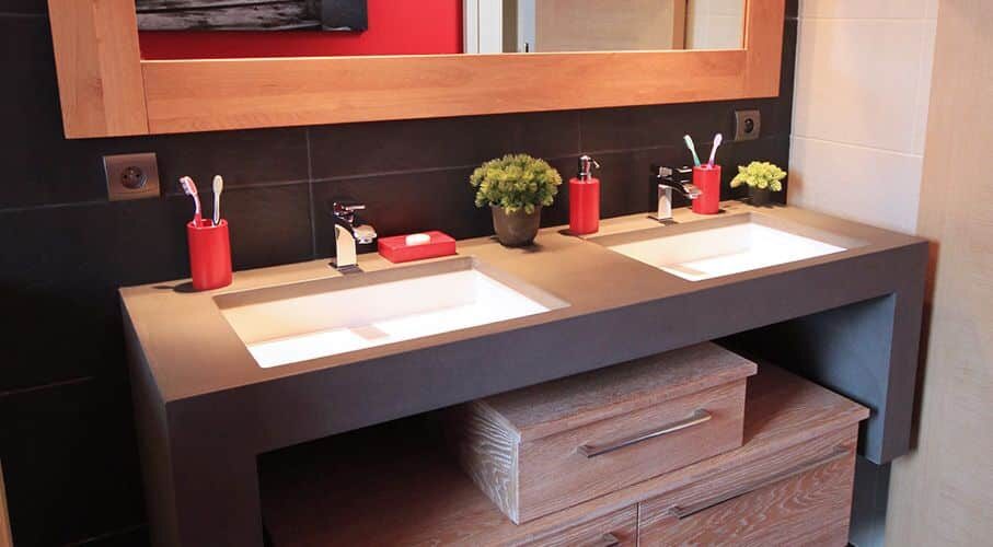 Structure en panneau de particules hydrofuge, recouvert d’un enduit minéral aspect béton « Baho ».