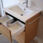 Prof tiroir du haut 35 cm – Prof tiroir du bas 35 ou 40 cm suivant tuyauterie - Poignées discrètes chromées 20 cm