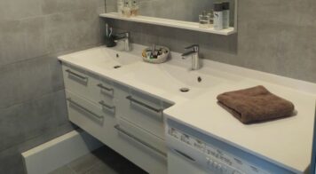 Plan de toilette résine solid surface blanc satiné