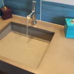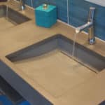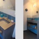Plan sur le dessus des caissons tiroirs aspect béton ciré gris « BAHO ».
