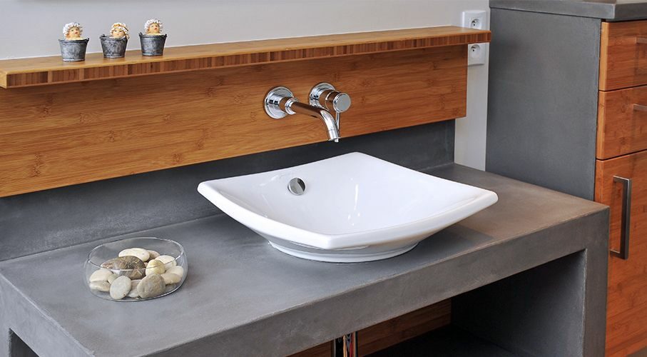 Meuble vasque en panneau particules hydrofuge, recouvert de béton ciré « Baho ».