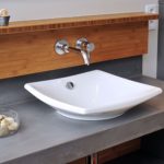 Meuble vasque en panneau particules hydrofuge, recouvert de béton ciré « Baho ».