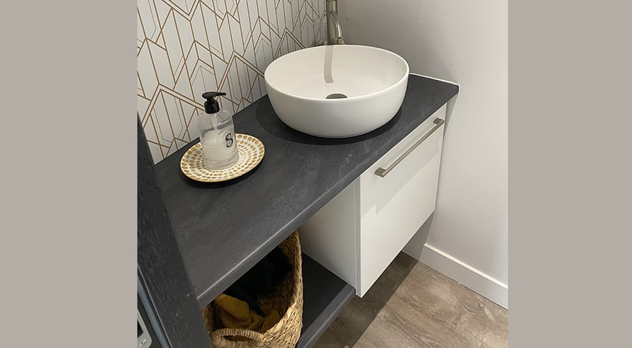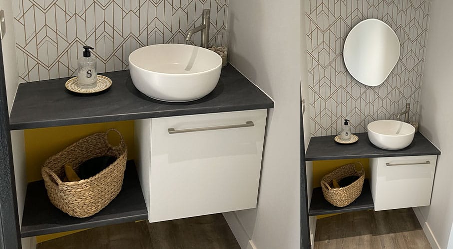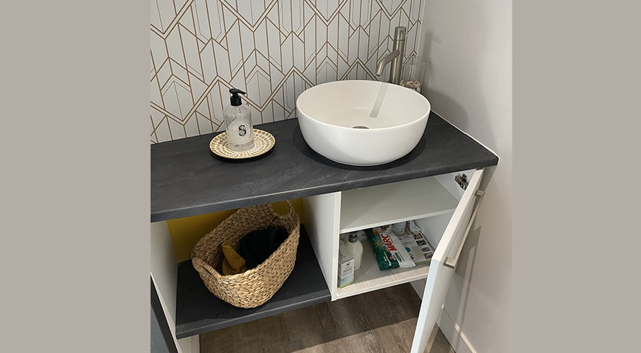 Adapter un meuble lave-mains sur mesure dans les toilettes.